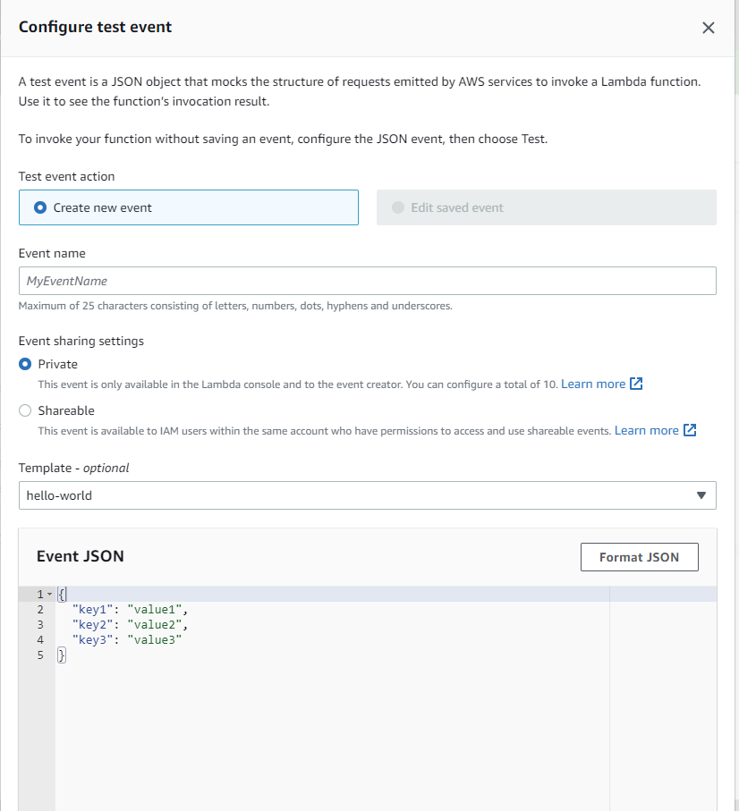 다음으로 Lambda에서 Test 환경을 구성해보자.