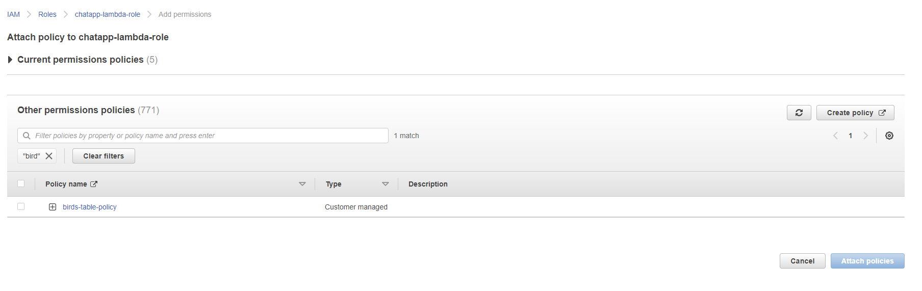 정책이 만들어졌으면, 이전에 IAM Role에 정책을 추가한다.