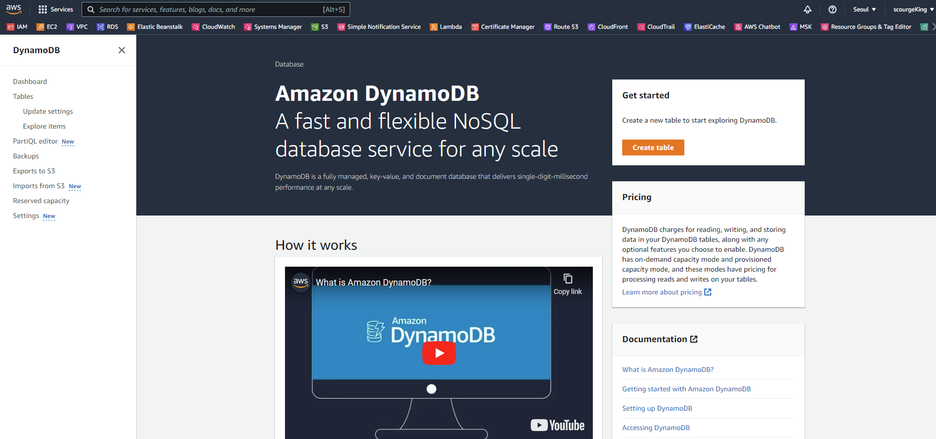 dynamodb = boto3.resource('dynamodb', region_name=REGION) #boto3에서의 리소스중에 DynamoDB를 받아서 dynamodb로 선언한다.