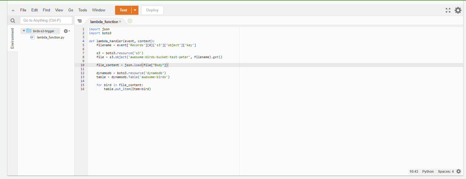 다음은 S3에 파일이 업로드 되었을때, Lambda에서 처리될 로직 코드를 작성하자.