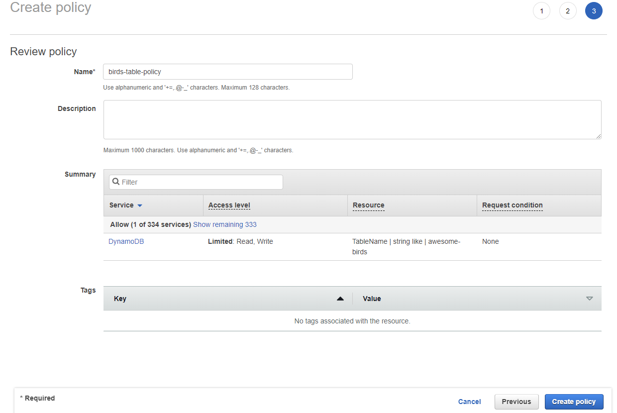 이미 Dynamo DB Full Access를 할당했기 때문에, 추가 작업을 진행하지는 않는다.