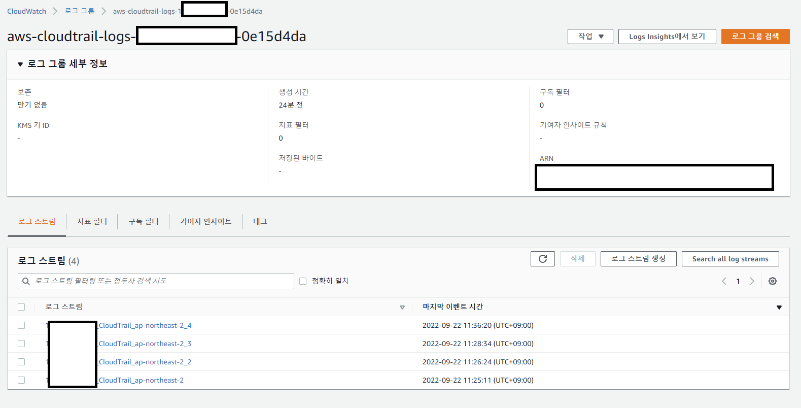 CloudWatch 로그 그룹에서 역시 로그 스트림이 하나씩 쌓이는 것을 확인할 수 있다.