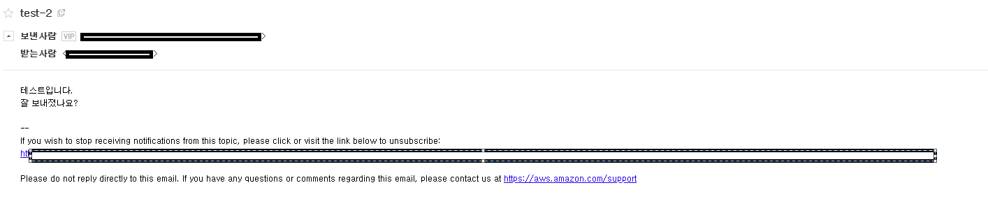 그 후 메세지 게시를 통해서 SQS와 Email 모두 제대로 메세지가 보내졌는지 확인 해 보았다.