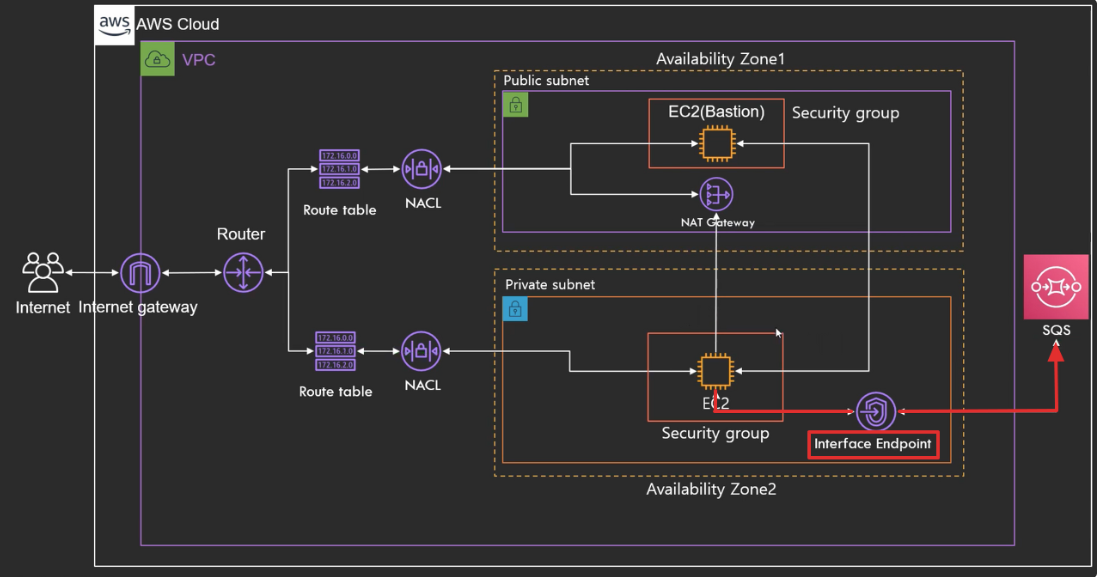 앞서 소개했던 것처럼 각 서브넷마다 Elastic network interface(ENI)를 생성하여 외부 서비스에 접근하기 위한 VPC 엔드포인트가 바로 인터페이스 엔드포인트(Interface Endpoint) 이다.