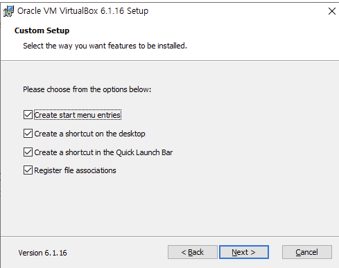 나는 모두 기본 설정으로 선택한 후 Next를 눌러 줬다.