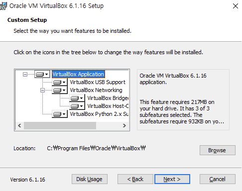 이 화면에서는 설치 경로 및 설치할 항목들을 선택하는 부분이다.