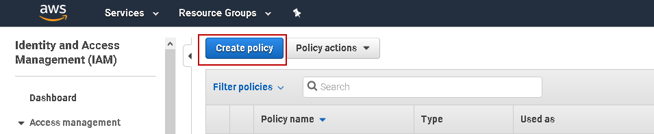S3와 RDS를 통합하기 위해 IAM(자격 증명 액세스 관리) 정책을 생성해야 합니다. 서비스에서 IAM으로 이동하고 정책 생성을 클릭합니다.