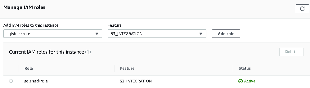 RDS 인스턴스에서 IAM 역할을 적용한 후에는 RDS SQL 인스턴스를 사용하여 S3 버킷에 연결할 수 있습니다.
