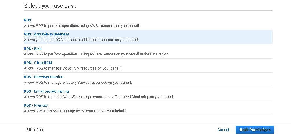 사용자 사례를 RDS – 데이터베이스에 역할 추가로 선택합니다.