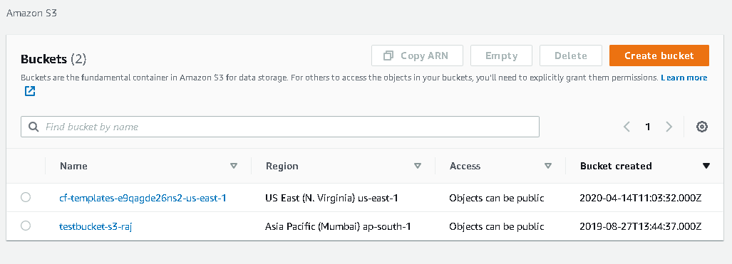 이 문서에 대한 새 S3 버킷을 만들어 보겠습니다. 서비스에서 S3로 이동하여 버킷 생성을 클릭하십시오.