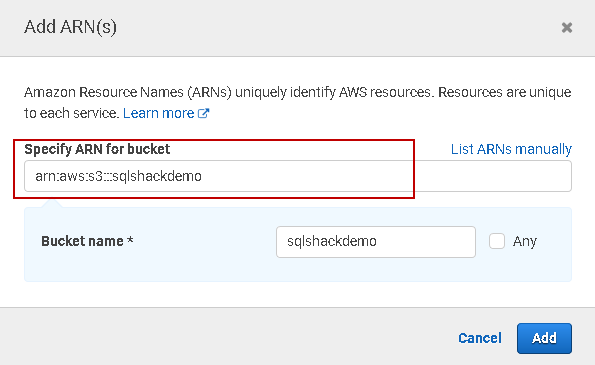 S3 ARN을 사용하여 S3 버킷과 그 안의 객체에 액세스해야합니다.