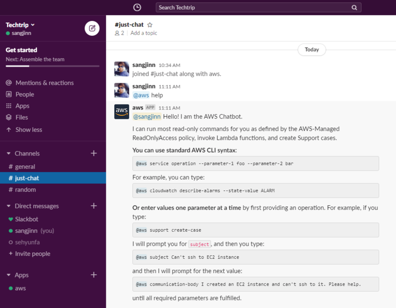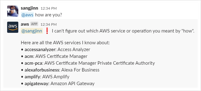 참고한 원문: https://aws.amazon.com/ko/blogs/devops/running-aws-commands-from-slack-using-aws-chatbot/