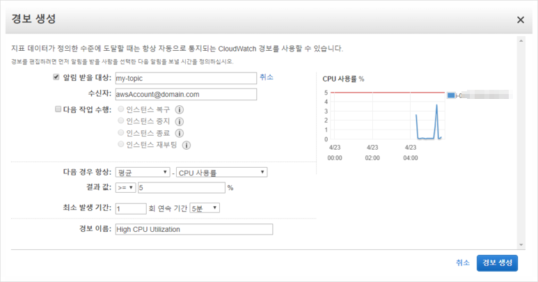 <AWS 경보 생성하기>