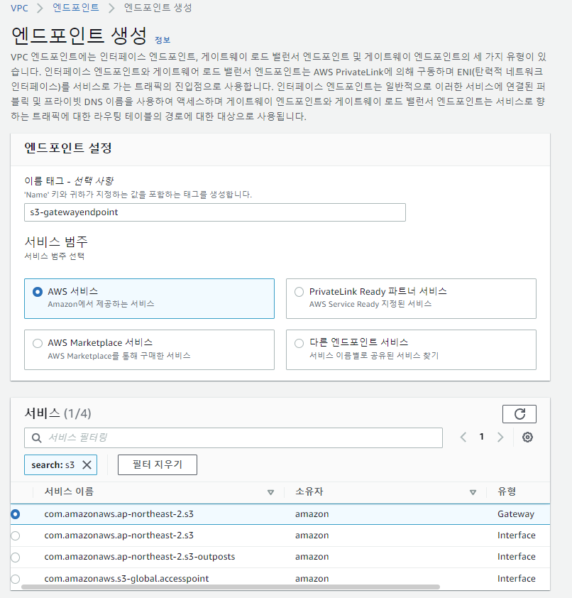 3. S3 게이트웨이 엔드포인트 생성하기