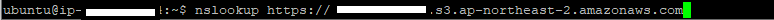 먼저 Bastion 서버로 들어가서 nslookup을 통해서 내 계정의 S3 서비스 주소를 확인하였다.