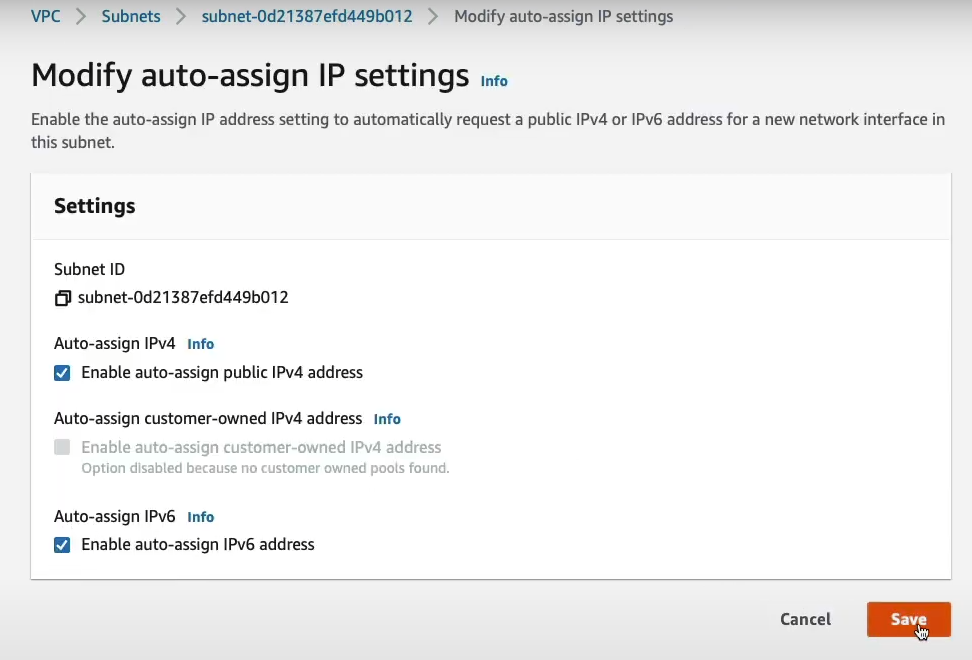 - Public-1a 활성화 : Edit IPv6 CIDRs