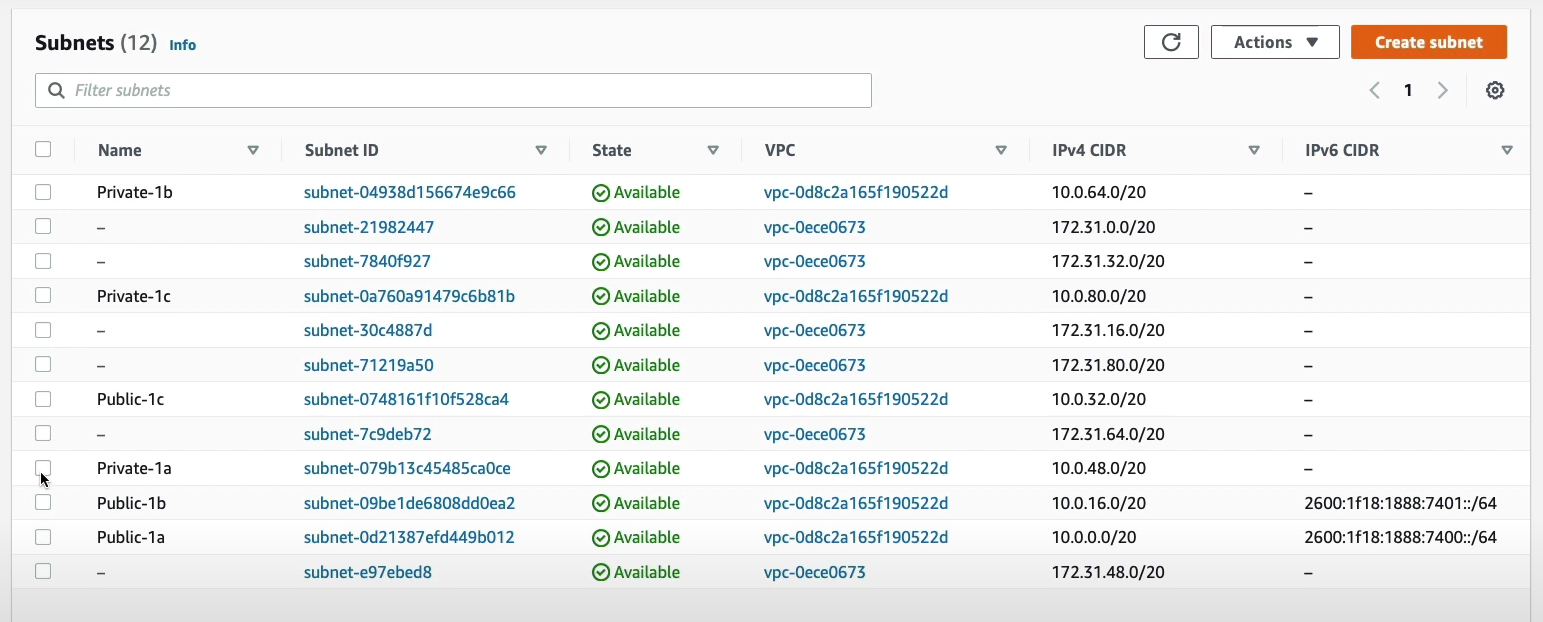 - Public-1b 활성화 : Edit IPv6 CIDRs